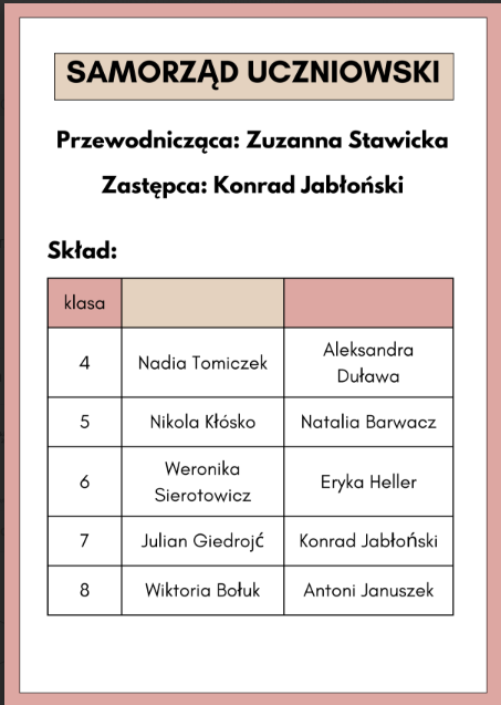 ZADANIEM OPIEKUNA SAMORZĄDU UCZNIOWSKIEGO JEST: